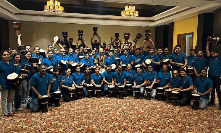 Join High-Energy Drum Circle Sessions in Pune and beyond – Boost Team Bonding & Collaboration.
